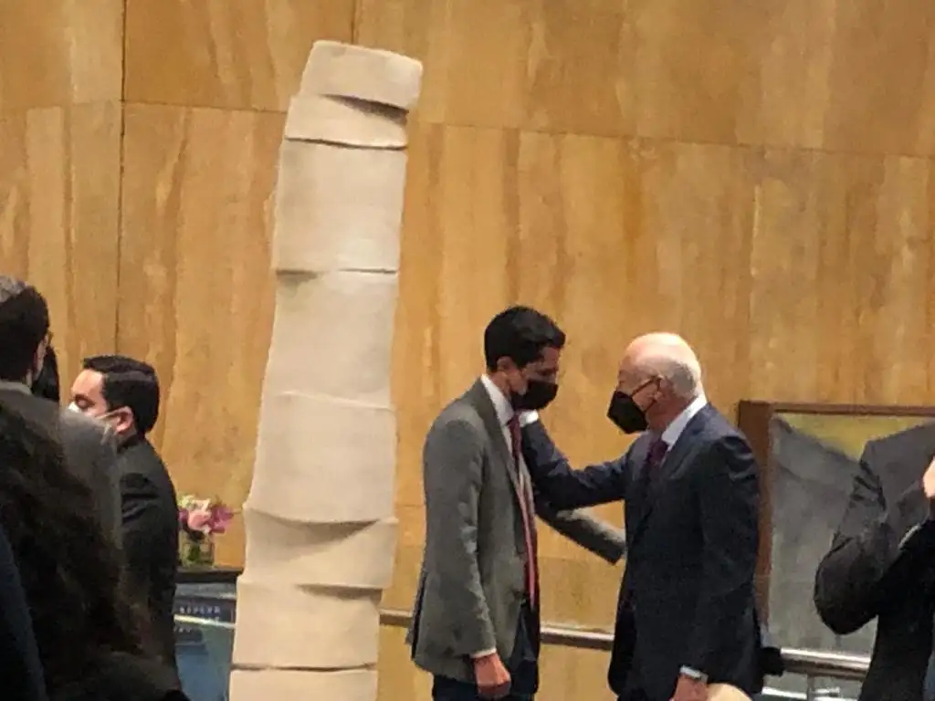 Al final de la conmemoración, se vio al embajador Salazar dialogando por varios minutos con el titular de la Unidad para América Norte de la SRE, Roberto Velasco Álvarez. Personal de la cancillería trató de impedir que reporteros gráficos tomaran aspectos de ese intercambio. En la plática, el diplomático fue expresivo con el funcionario mexicano y se despidieron con efusivas palmadas en la espalda.