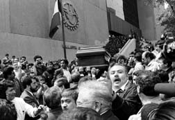 Traslado de la CTM al Senado. Foto: Ernesto Ramírez