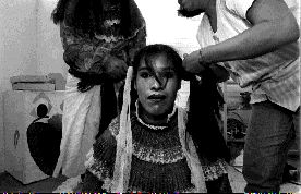 Dos mujeres peinan a una indígena, durante la inauguración del Centro Educativo de Desarrollo Infantil Comunitario Indigena ŨDallo YabenkiŨ, en la delegación Venustiano Carranza Ť Foto: María Luisa Severiano SAN LUNES