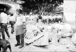 DESALOJO EN OAXACA  Mientras vendedores ambulantes que se habían instalado sin autorización en el Zócalo oaxaqueño eran desalojados, sus líderes anunciaron bloqueos a los principales accesos a la ciudad FOTO EZEEQUIEL LEYVA