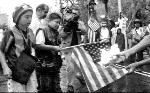 Ya en la embajada incendiaron banderas de Estados Unidos.