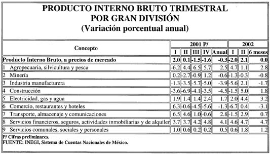 a igual periodo de 2001. Cifras desestacionalizadas del producto interno