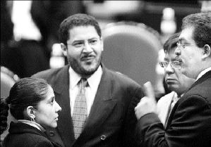 Armando Quintero Martínez, del grupo IDEA, a nombre de una docena de organizaciones perredistas leyó un posicionamiento en el que hacen un exhorto a todas las instancias locales del partido a evitar que se utilicen recursos públicos o partidistas para favorecer a alguno de los aspirantes que buscarán un puesto de elección popular en 2003.