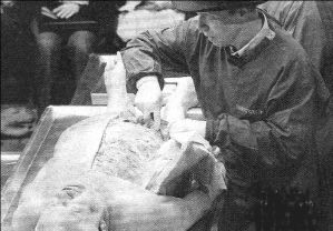la autopsia pública viola la ley de anatomía. Entre el público