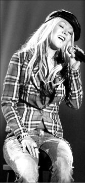 Christina Aguilera canta durante la celebración previa al juego de las estrellas de basquetbol de la NBA, ayer. El encuentro deportivo se realizará esta noche FOTO REUTERS