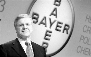 BAYER APLACA EL DESCONTENTO  El fabricante químico y farmacéutico alemán Bayer enfrenta en Estados Unidos 8 mil 600 demandas a causa del fármaco anticolesterol Lipobay, vinculado con la muerte de unas cien personas, según se informó hoy en Colonia, Alemania, durante la asamblea general de la empresa. En tanto, Bayer logró acuerdos extrajudiciales con 740 demandantes con gastos por 219 millones de dólares para la empresa, señala la información. En las pasadas semanas, las acciones de Bayer subieron marcadamente tras conocerse tales convenios FOTO AFP