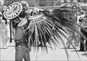 RITO PREHISPANICO  Un conchero toca el caracol en un costado del Templo Mayor FOTO JOSE ANTONIO LOPEZ