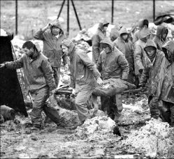cuerpos de 59 miembros de Hezbollah, que comenzaron a ser exhumados hoy