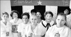 mujeres vestidas de blanco con ribetes negros. Al-gunas llevaban camisetas