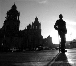 Un anciano camina al amanecer en el Zócalo de la ciudad de México FOTO JOSE CARLO GONZALEZ