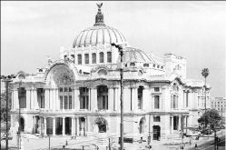En este sitio se encontraba el convento de Santa Isabel, que fue demolido para construir lo que sería el nuevo Teatro Nacional. Puede verse la armazón metálica construida por la compañía Milliken Bros. y transportada desde Estados Unidos. Esta gran estructura fue ahogada en concreto, lo que se percibe en la parte baja de la obra. Al no existir maquinaria especializada en esa época, el transporte de los materiales provenientes de la estación San Lázaro se realizaba a lomo de mula.  Palacio de Bellas Artes, 2000 FOTO PEDRO HIRIART