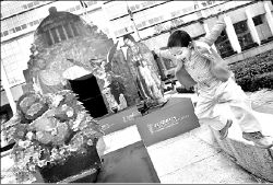 Un niño juega frente a un nacimiento que incluye reproducciones de monumentos de la ciudad de México FOTO JOSE CARLO GONZALEZ