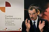 El presidente Vicente Fox durante una conferencia de prensa, en el contexto de la Cumbre Iberoamericana, en Salamanca, Espa�FOTO Ap