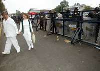 Aspecto del mitin de trabajadores del Seguro Social frente a su sede sindical, en Tlalpan FOTO Francisco Olvera