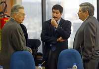 Los senadores Manuel Bartlett Díaz, Javier Corral Jurado y Jorge Nordhausen, a su llegada a la sesión de ayer en la Torre de El Caballito