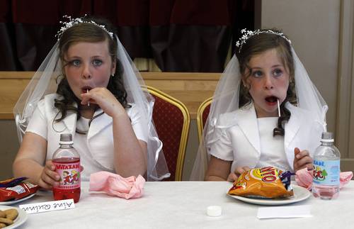 El cine de EU toma al espectador como objeto de consumo, no como sujeto de derechos, lanzó Malowicki. Arriba, imagen de unas gemelas irlandesas en su primera comunión Foto Reuters