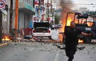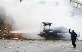 En el ataque del jueves a policías federales en Ciudad Juárez el saldo fue de cuatro muertos y 11 heridos. Mientras el comandante de la V Zona Militar, Eduardo Zárate, indicó que se utilizaron 10 kilos de explosivo, detonados mediante un celular, la PGR aún no sabe si se usó un coche bomba Fotos Ap