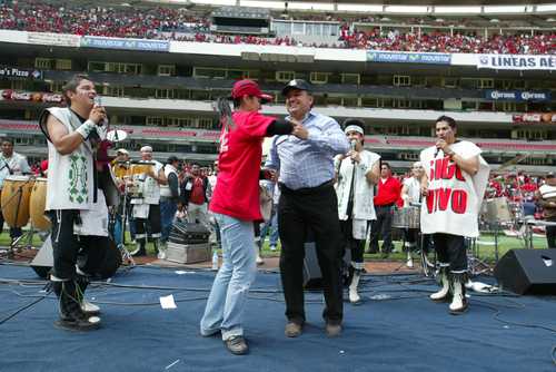 Los electricistas y sus familias llenaron la mitad del estadio Azteca, es decir, asistieron unas 50 mil personas. Esparza estuvo acompañado por integrantes de su comité y por el diputado federal por el PT Gerardo Fernández Noroña. En su discurso leyó un mensaje de Miguel Márquez Ríos, prosecretario de divisiones del comité central del SME, “preso político” en Puebla, “por orden de Calderón y Javier Lozano, con el fin de detener y criminalizar la lucha social”.