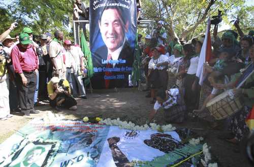 Marcha para recordar al coreano Lee Kyung Hae, quien se inmoló en 2003Foto Carlos Ramos Mamahua