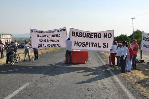 En Axapusco, estado de México, alrededor de 200 pobladores de esta localidad bloquearon cinco horas la autopista México-Tulancingo en protesta por la construcción de un vertedero y una planta recicladora de basura en la cabecera municipal, a un costado del hospital materno-infantil.