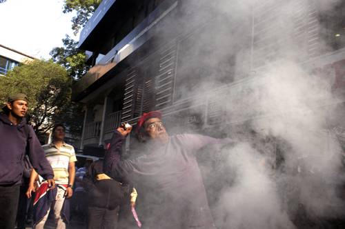 De acuerdo con reportes de la SSP-DF, los granaderos tuvieron que “replegar” a los manifestantes, pues lanzaban diversos objetos al inmueble, lo que generó un enfrenamiento con los mentores que dejó como saldo cuatro profesores lesionados y 10 detenidos por daños, quienes fueron trasladados ante el juez cívico.