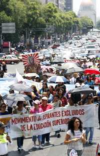Jóvenes que exigen un lugar en la educación superior marcharon ayer del Hemiciclo a Juárez a la SEPFoto Roberto García Ortiz