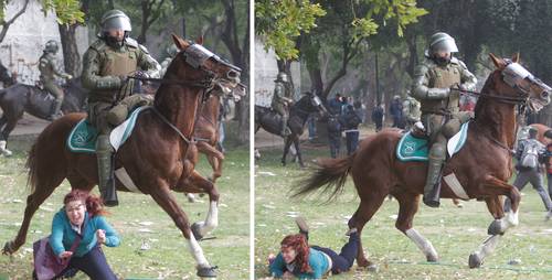 La policía militarizada de Carabineros trató entonces de contener con bombas lacrimógenas y carros lanzagua los disturbios, y en la refriegas resultaron decenas de heridos por pedradas y bastonazos de las fuerzas del orden.