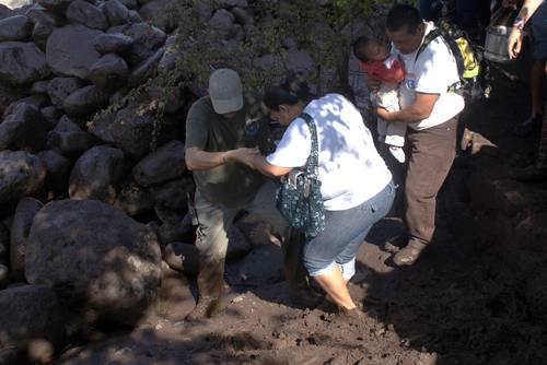 La tormenta multiplicó el volumen del arroyo El Grande, que al desbordarse arrastró piedras, troncos y maleza, y formó un alud que alcanzó alturas de 1.20 metros, debido a que un incendio ocurrido en mayo consumió gran parte de la vegetación del cerro, según la unidad municipal de protección civil.