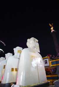 Poco antes de la 11:30 de la noche los gigantes blancos llegaron al Zócalo, cercado por una barda provisional y donde varios trabajadores terminaban de armar la plataforma de madera en torno al astabandera.