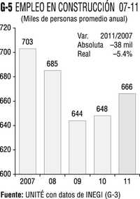 De hecho, en 2011 la construcción ocupó 38 mil personas menos (-5.4%) que en 2007 (Gráfico 5).