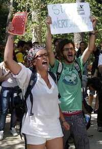 Los adolescentes gritaron “¡Viva la educación pública!”, “¡Qué pasa, qué pasa, que nos suben las tasas!” o “Recortes al Borbón y no a la educación”, “¡Viva la república!” o “¡Vais a caer!”