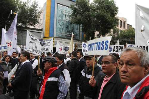 Los integrantes de los cuatro sindicatos marcharon ayer a la Secretaría de Gobernación, donde demandaron que el gobierno panista y concretamente los funcionarios de la Secretaría de Comunicaciones y Transportes (SCT) dejen de obstaculizar el regreso de la aerolínea.