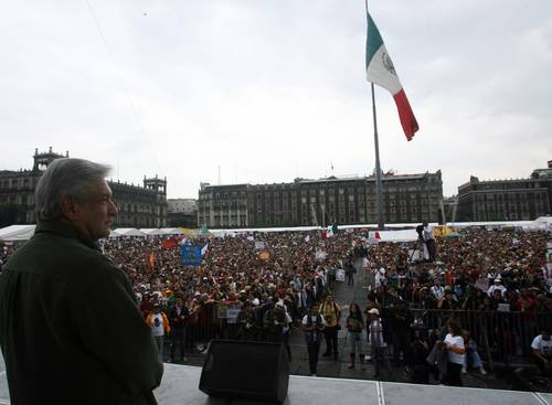El candidato de las izquierdas a la Presidencia de la República indicó que el movimiento que encabeza tiene por ahora una sola estrategia: “no le vamos a dar vuelta a la página hasta que no resuelva el tribunal que se invalida la elección para hacer valer la democracia en nuestro país”.