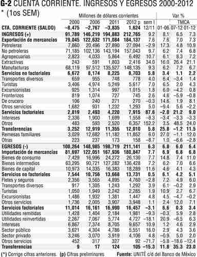 Comparando los primeros semestres de los últimos dos sexenios, entre 2001 y 2012 las ventas de mercancías crecieron a una tasa media anual (TMCA) de 7.3% (a 10.9% las exportaciones petroleras y a 6.8% las no petroleras) (Gráfico 2).