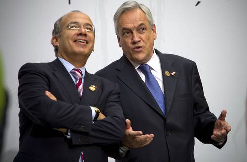 En breve mensaje a los medios, donde estuvieron los cuatro mandatarios, Piñera agradeció en nombre del grupo los “aportes” de Calderón a México, a América Latina y a la alianza, ahora que está a unos días de concluir su gobierno.