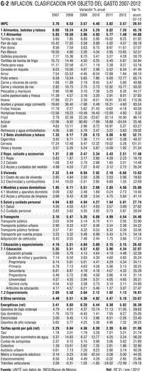 egún el INEGI, la inflación general en el país (precios al consumidor, INPC) fue de 3.57% en 2012; la de la Canasta Básica de 3.97%; y la de insumos al productor (INPP) de sólo 1.54% (Gráfico 1).