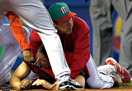 En un juego clave para pasar a la siguiente ronda del Clásico Mundial de Beisbol, la selección mexicana cayó 10 carreras a 3 ante Canadá. En el encuentro, realizado en el estadio Chase Field, de Phoenix, Arizona, hubo golpes y expulsados Foto Ap