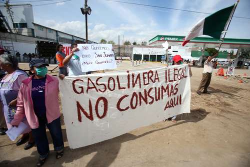 Habitantes del pueblo de San Pedro Mártir, en la delegación Tlalpan, e integrantes del Movimiento Popular de Pueblos y Colonias del Sur exigieron a los gobiernos federal y capitalino poner fin a los actos “intimidatorios, negligentes y violatorios de los derechos humanos” que “han sufrido” al oponerse primero a la construcción y ahora a la puesta en operación de la gasolinera ubicada en el kilómetro 19 +540 de la autopista México-Cuernavaca.
