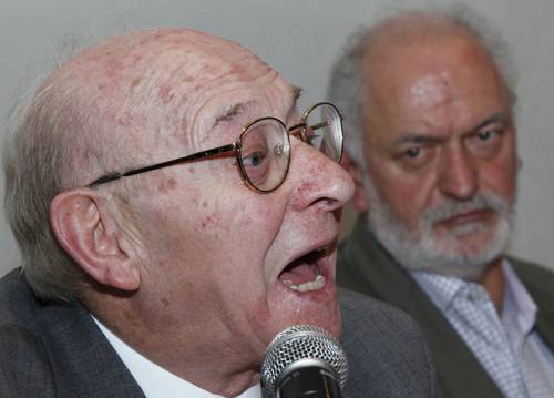 José Barba, ex seminarista de la Legión de Cristo, y el ex sacerdote católico Alberto Athié Gallo, en conferencia de prensa. El primero expresó su desconfianza de que con Eduardo Robles Gil al frente de la congregación se produzcan cambios de fondo, ya que formó parte del círculo cercano del pederasta Marcial Maciel, fundador de la organización católicaFoto Ap