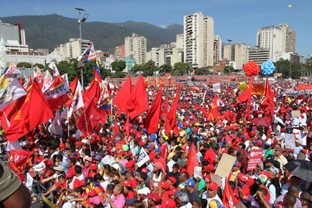 Caracas fue ayer el escenario de dos movilizaciones pacíficas, una en favor –multitudinaria– y otra en contra –de la que no hubo reporte de afluencia– del presidente de Venezuela, Nicolás Maduro, quien acusó al ex mandatario colombiano Álvaro Uribe de organizar las recientes protestas. También responsabilizó al líder del partido Voluntad Popular, Leopoldo López, de la violencia desatada el pasado miércoles Foto Xinhua