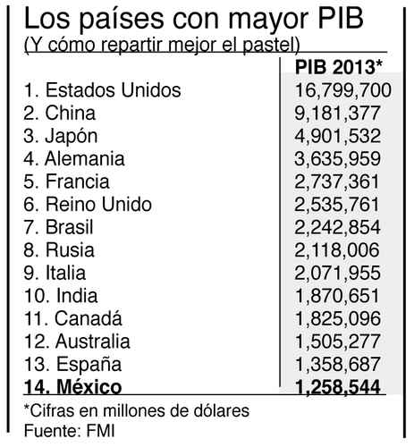 En años recientes México llegó a ocupar el número 9 entre las principales economías del mundo medidas por el PIB. En el desastre de ‘‘Vicente Calderón’’ perdió 5 lugares y ahora se ubica en el sitio 14, según datos del Banco Mundial y del Fondo Monetario Internacional. ¿Qué puede hacerse desde esa posición? Mucho, muchísimo. No es necesario esperar a que se cumplan los nuevos y dudosos pronósticos de crecimiento económico. Tal como está, si el gobierno se lo propusiera podría implementar políticas para que el pastel se reparta mejor. La vía es el empleo: más y mejor pagados. La pregunta es si sería capaz de ir más allá de la ecuación que se encuentra en la base del sistema: un pobre = un voto.