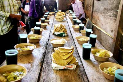 ![]() Comida comunitaria en Sinaí, municipio de Chilón, Chiapas. Foto: Enrique Carrasco |