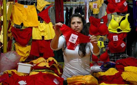 Los capitalinos se preparan para recibir el Año Nuevo con calzones de color rojo o amarillo, amuletos, limpias, ritos y veladoras, para conjurar los problemas de dinero, amor y salud. Las compras de ropa interior se realizan principalmente en el comercio ambulante y tiendas de autoservicio, donde los precios oscilan entre 20 y 50 pesos por prenda, mientras en las tiendas departamentales cuestan de 250 a 900 pesos, según la marca. Los borregos y cochinitos son otras de las figuras adquiridas para atraer la abundancia, así como las veladoras para alejar