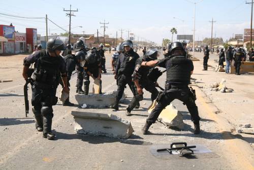 Unos 300 agentes de la Policía Estatal Preventiva se mantuvieron a la expectativa de la toma de la carretera y no intervinieron cuando los manifestantes arremetieron contra vehículos, y el subsecretario de Gobierno, Pablo Alejo López Núñez, admitió que tenía muy claro que la violencia no venía de los trabajadores del campo.