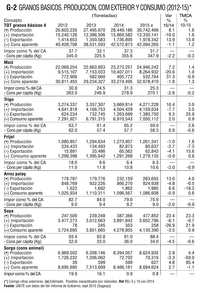 Autosuficiencia. Este año, las buenas cosechas permitieron re-ducir sensiblemente las importa-ciones en: maíz -20.6%, trigo -7.7, frijol -2.7 y arroz -4.8 También se redujeron las de soya en -6.1 y sorgo -3.3% (Gráfico 2).