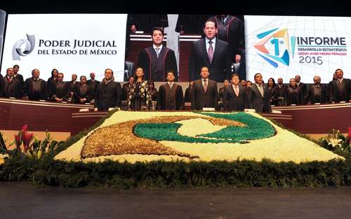Al rendir su primer informe de labores, el presidente del Tribunal Superior de Justicia del estado de México, Sergio Javier Medina Peñalosa, recalcó que el Poder Judicial mexiquense ha sido reconocido como uno de los primeros cuatro en aplicar el nuevo sistema de justicia penal en todo el país. Adelantó que para el presente año se ampliarán de 85 a 125 las salas de audiencias para juicios orales y se incrementará la plantilla de jueces penales de 153 a 199 para estar preparados para la aplicación del nuevo Código Penal de Procedimientos Penales.