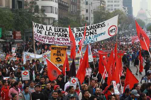 La movilización –que partió del Ángel de la Independencia y culminó con un mitin en el Zócalo– fue convocada por la Unión Nacional de Trabajadores (UNT) y el Frente Amplio Social Unitario (Fasu). Asistieron integrantes de los sindicatos de Trabajadores de la Universidad Nacional Autónoma de México (Stunam), de telefonistas, de la Universidad Autónoma Chapingo, así como de la Central Campesina Cardenista (CCC) y la Coordinadora Nacional Plan de Ayala, entre otros.