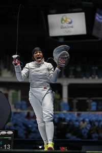 La deportista de 30 años, octava del escalafón mundial en sable, usa el velo en apego a su religión musulmana y avanzó a la segunda etapa del torneo al imponerse por 15 toques a 13 a la ucraniana Olena Kravatska, pero perdió en la siguiente fase por 15-12 ante la subcampeona del mundo en la modalidad, la francesa Cecilia Berder.