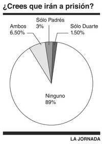 oy, Javier Duarte, gobernador con licencia de Veracruz, enfrenta una orden de aprehensión por los delitos de lavado de dinero y delincuencia organizada, mientras que sobre Guillermo Padrés, ex gobernador de Sonora, hay una ficha roja de la Interpol, lo que significa que es buscado en 190 países por la comisión de diversos delitos. En la encuesta de la semana preguntamos: ¿crees que irán a prisión? Estos son los resultados.