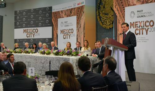 El Centro Paley realiza en México su 21 reunión anual cumbre. En Los Pinos tuvo lugar una cena donde Peña refirió a México como un país con 82 años de relevos en la Presidencia de la República de forma “ordenada y pacífica que da testimonio de nuestra sólida vida democrática”. En la cena estuvo la esposa del presidente Peña, Angélica Rivera.